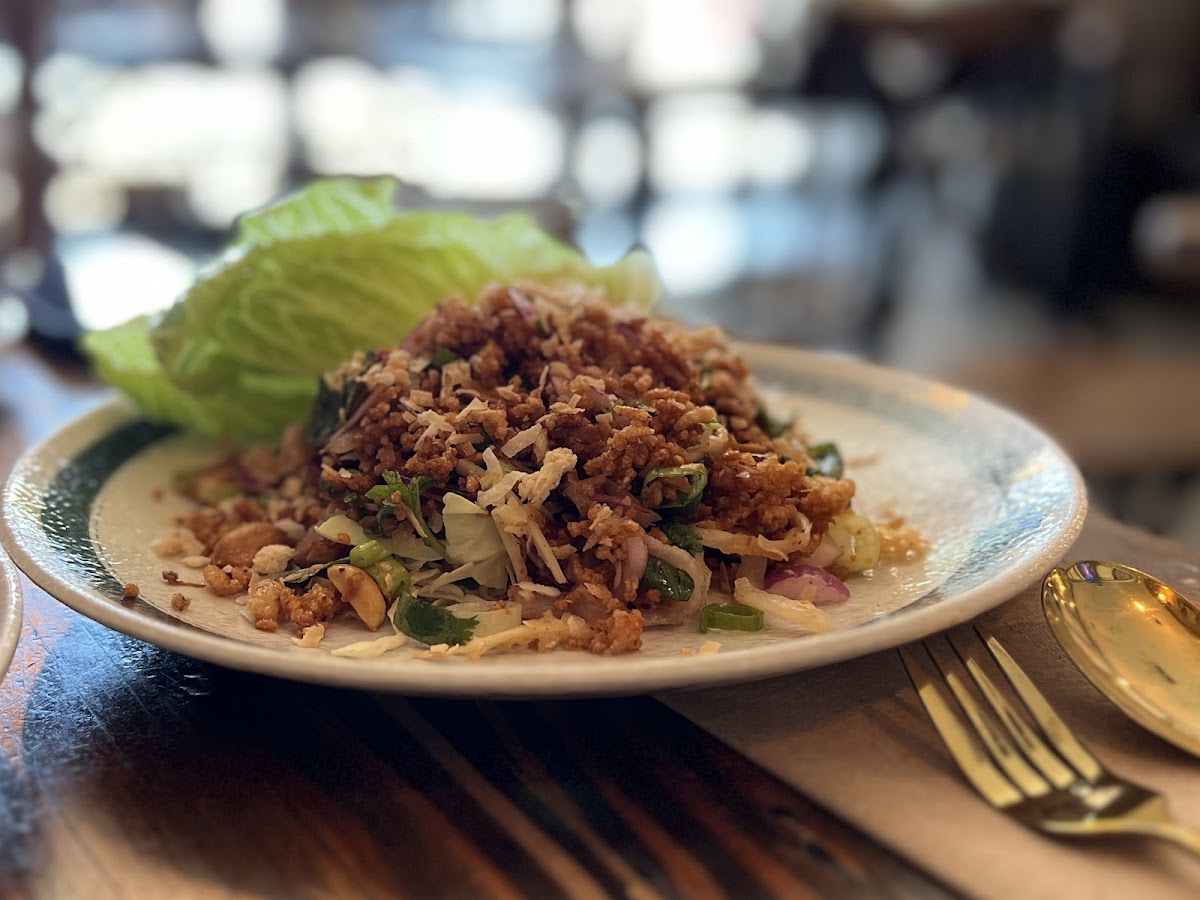 The first dish I tried was their larb, which the kitchen prepares using a traditional method that focuses on fresh herbs, toasted rice powder, and a careful balance of lime and chili. Thai culinary researchers from institutions like the Thai Ministry of Culture often emphasize that larb is less about heat and more about balance, and that philosophy is clear here. The flavor hits bright and savory at the same time, without overwhelming your palate. I asked the server how they keep it so consistent, and she explained that the team preps herbs daily and toasts rice in small batches, a real-world process that takes more time but pays off on the plate.